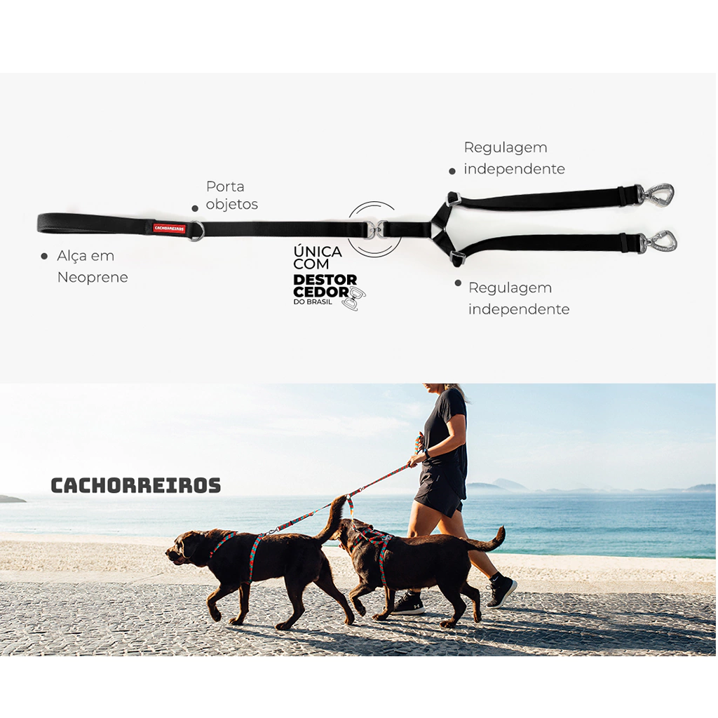 A Guia Dupla é regulável e pode ser utilizada em cães de qualquer portes