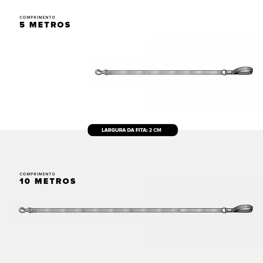 Confeccionada nos tamanhos 5 m e 10 m, com fita na largura de 20 mm para garantir leveza e resistência.