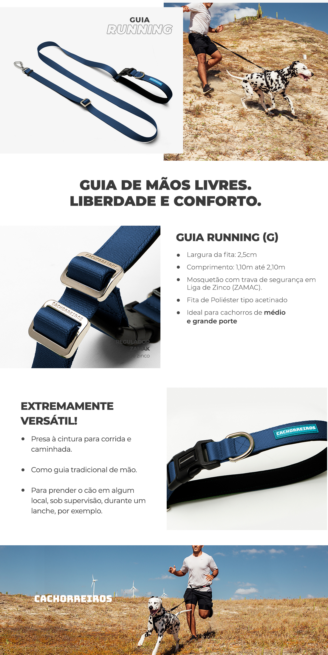 A Guia Running é ideal para quem curte correr, caminhar ou fazer qualquer atividade ao ar livre em companhia do seu cão. É extremamente versátil! Além de ser uma Guia projetada para corridas ou caminhadas quando usada presa na cintura, você ainda pode ajustá-la e ter mais 2 opções de uso:
