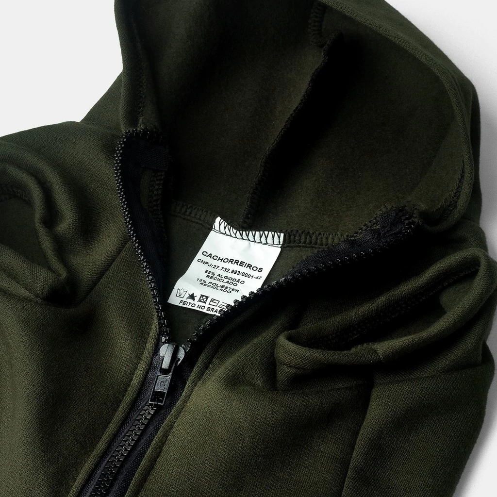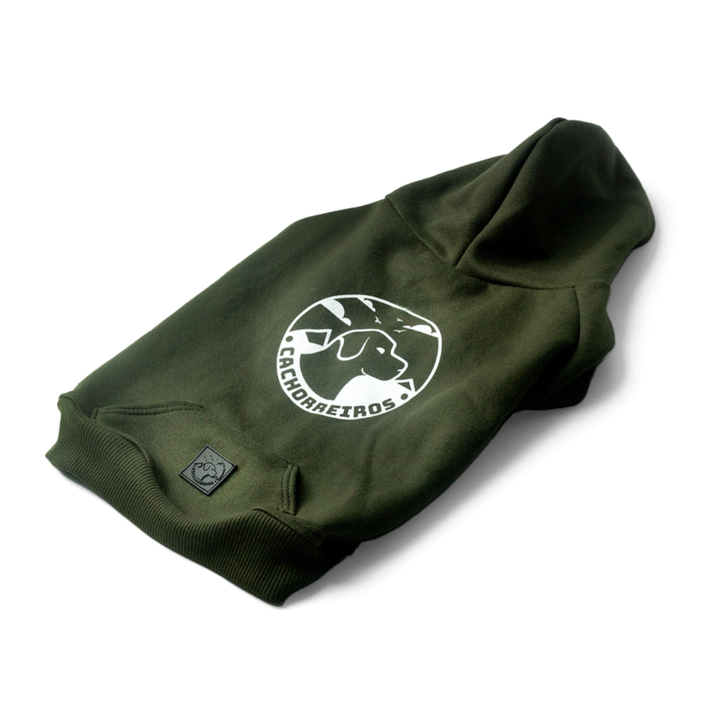 Os moletons Cachorreiros são confeccionados em tecido peluciado maleável que aquece sem restringir os movimentos do seu cãopanheiro.